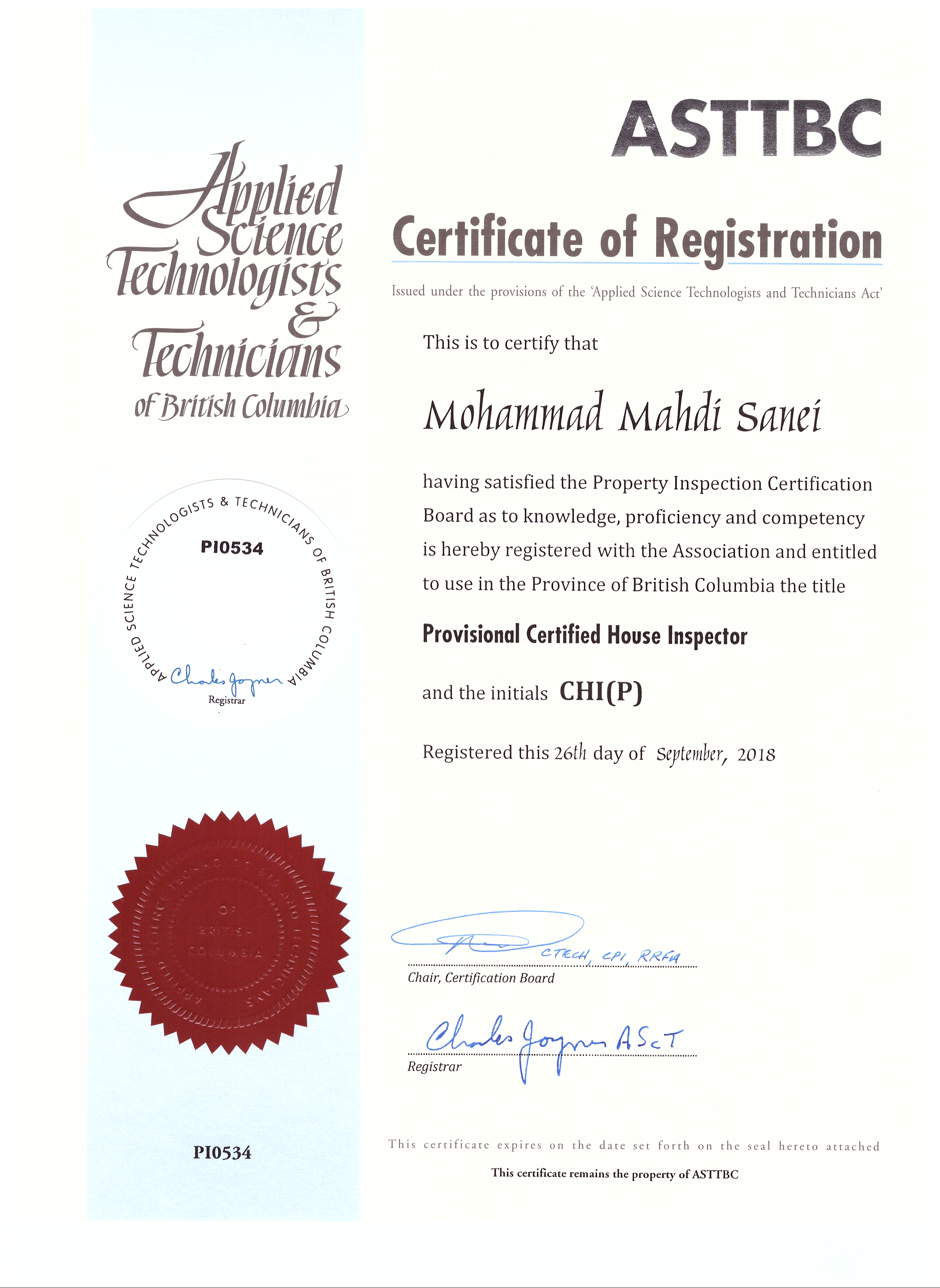 ABC Home Inspections is owned and operated by Mahdi Sanei in Vancouver, BC. He graduated from the British Columbia Institute of Technology (BCIT) in Home Inspection, Building design and Architectural CAD. He graduated from Tehran University with a Master’s degree in Architecture 1999. He has worked in the residential, commercial design and construction. Mahdi honed these skills throughout his life, working for 14 years project supervisor and home designer throughout the last 21 years.